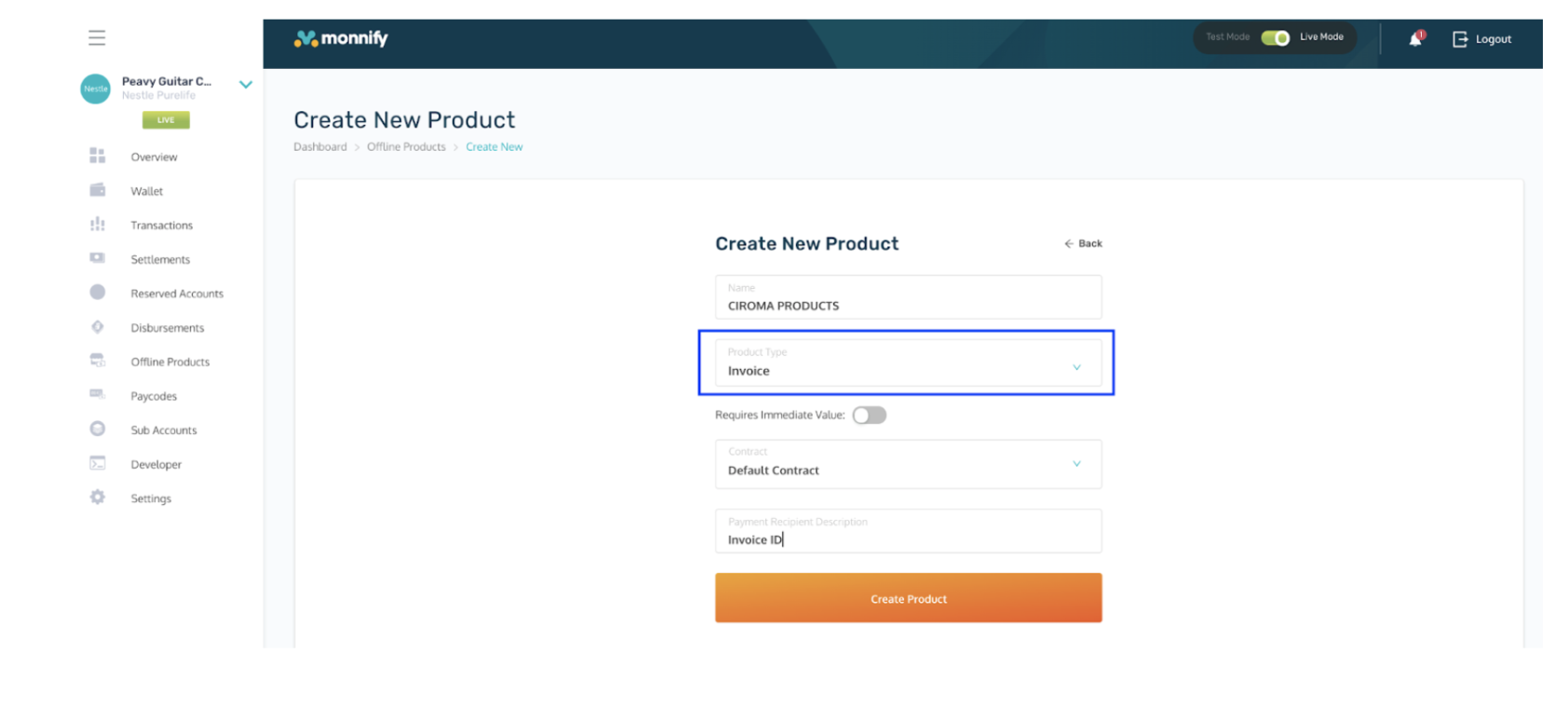 This is a product that requires that an invoice be created for every payment that is to be made for a product. The invoice product type is quite different from the other types in that the invoice doesn’t become fully active on creation on the Monnify platform.